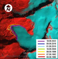 The positive solution of this equation is approximately 154. This result means that if the current trend of retreat continues, the Adishi Glacier will probably melt completely in 154 years, or in 2131 (the starting point is 1977).