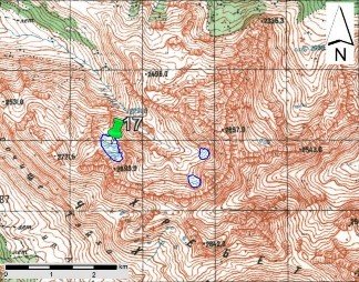 Fig. 1. Contours of glacier No. 17: a − on a topographic map, b − according to the Landsat 7 ETM+ sensor image of August 31, 2010, c − according to the Landsat 8 OLI sensor image of September 5, 2015, d − according to the Landsat 8 OLI TIRS sensor image of September 11, 2020.